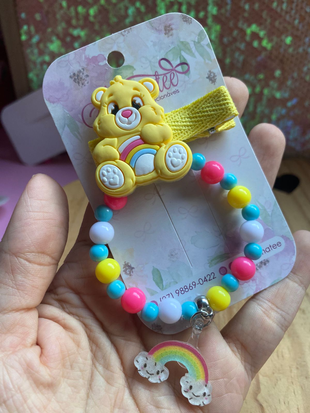 Kit Temático – Ursinho Amarelo – Hair Clips e Pulseira